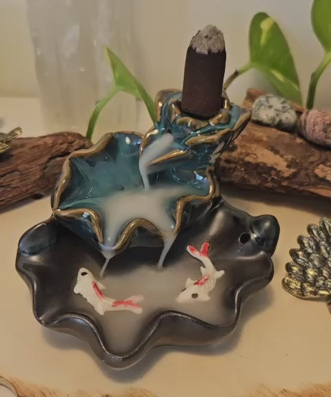 מעמד קטורת מפל עשן בריכה מדורגת דגים משדרג לכם את חווית הקטורת. מעבר למגוון הריחות של הקטורת, מעמד קטורת מיוחד זה מביא גם אפקט ויזואלי מרשים של עשן הקטורת הזורם מטה כמו מפל טבעי הזורם לבריכת דגים, ויוצר אווירה של שלווה ורוגע.