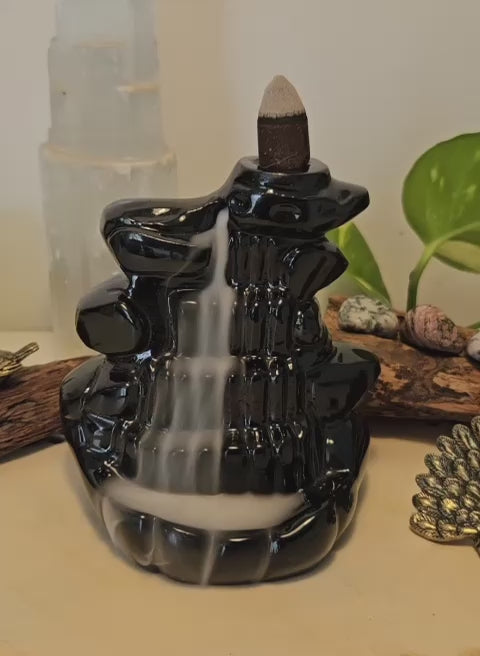 מעמד קטורת מפל עשן קיר זרימה משדרג לכם את חווית הקטורת. מעבר למגוון הריחות של הקטורת, מעמד קטורת מיוחד זה מביא גם אפקט ויזואלי מרשים של עשן הקטורת הזורם מטה כמו מפל טבעי במורד הקיר המדמה סלע מעוצב.